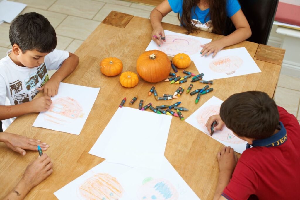 Pumpkin painting is especially popular for kids because it’s safe, educational, and fun. Using paint instead of carving tools makes it an ideal group activity at home or school.