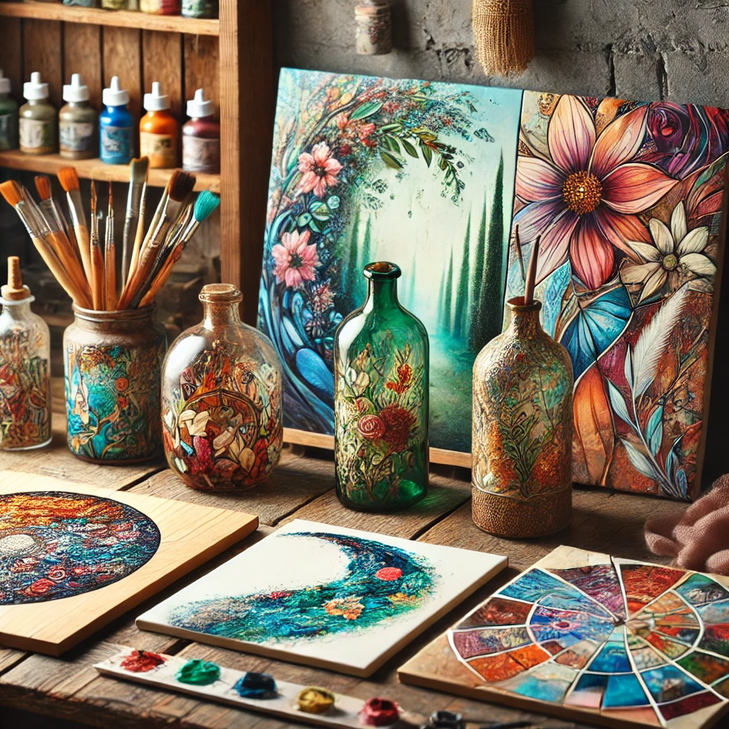 - Ceramics and Tiles (e.g., unused bathroom tiles): Provide a glossy surface, perfect for vibrant, intricate designs.